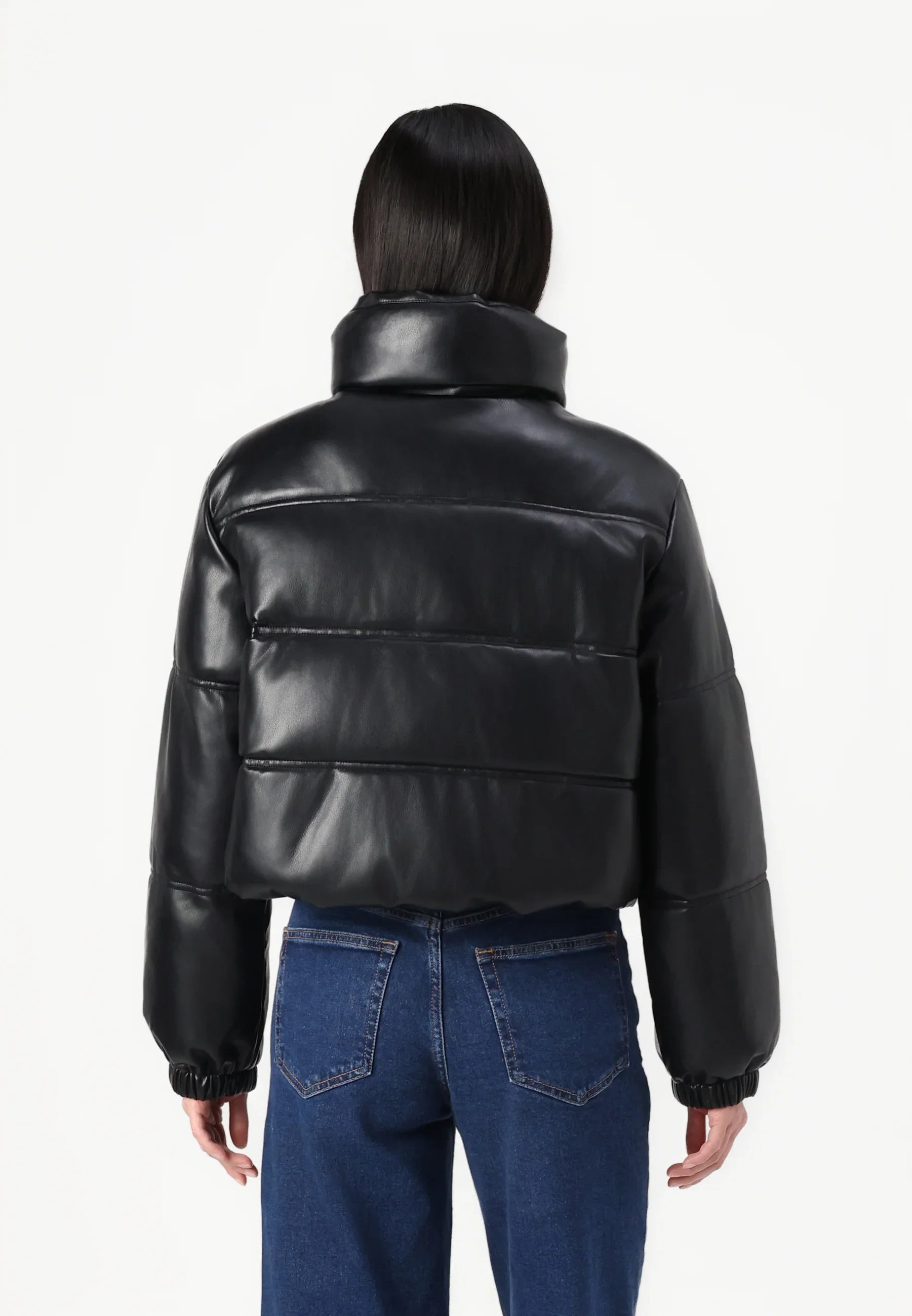 Piumino corto dal look moderno effetto pelle sintetica, con imbottitura calda e cappuccio rimovibile. Leggero, confortevole e facile da abbinare, è perfetto per l’uso quotidiano.